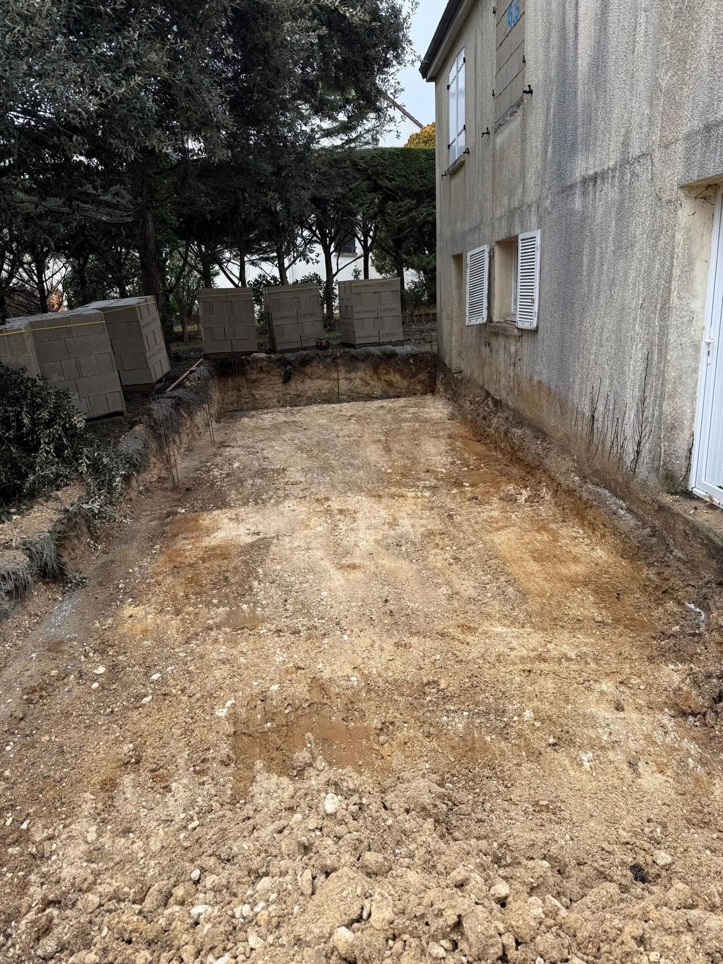 Terrain nivelé et préparé pour l'agrandissement de la maison